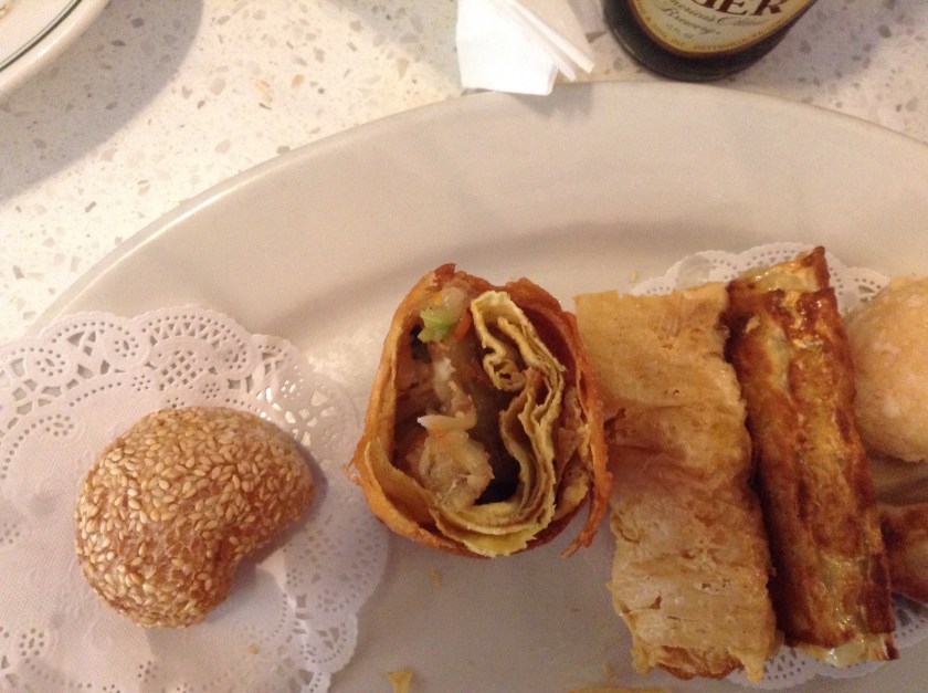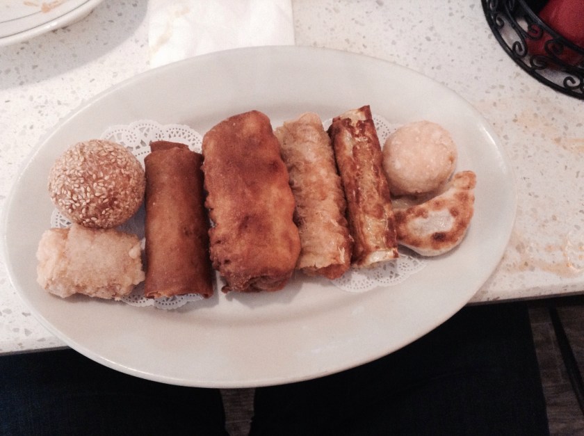 Up next I decided to go with the fried dim sum sampler, which is a glorious fried platter of usual Chinese suspects. The fried bacon shrimp roll with a fresh shrimp taste at the beginning and a tasty bacon aftertaste, the fried pork dumpling, the spring roll with a delicious celery flavor, the original egg roll with a huge mushroom flavor, the fried shrimp roll in bean curd skin, the fried tofu (not my favorite) and to finish the sweet Sesame ball filled with lotus paste. This is a plate of decandent flavor, but I suggest you don’t eat it all by yourself because it may put you straight into cardiac arrest.
