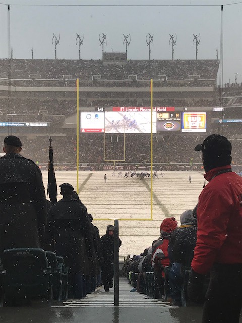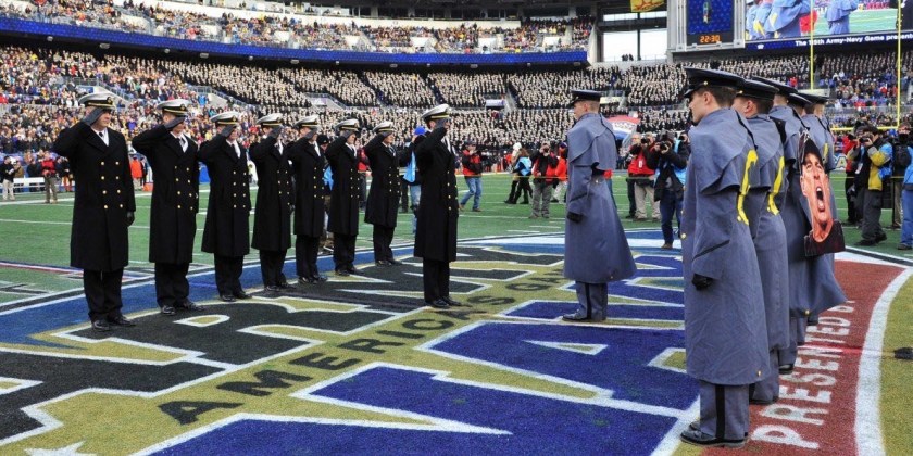I had the honor to go to last years game. It was in the snow in Philly, it was cold, it was ugly and it was great. Navy lost on a last second missed field goal 14-13 but watching the two teams come together at the end of the game to sing their alma-maters with their fellow classmates and alumni is what this game is all about. This game signifies what America is all about, lay it all on the field, scratch and claw to win but after it’s over come back together and stand United as one.