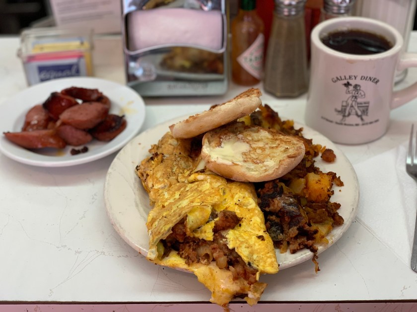 Marathon Man dropped us off and we checked in, then ventured into Southie to grab breakfast. The Aloft hotel in the Seaport District had provided us with a pamphlet of surrounding spots and when I saw that Anthony Bourdain had visited The Galley Diner on his show No Reservations I knew where we were heading.