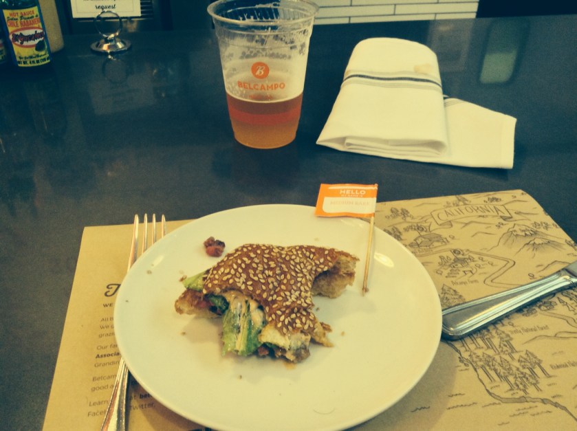 We gathered down in the hotel lobby and decided to take a Lyft to Fathers Office in Santa Monica for Happy Hour. Fathers Office was the exact opposite of every other place I visited, it reminded me of something you would find in Philly, the atmosphere was fun, very casual and no nonsense. If I were to move to LA, I would easily become a regular. By the way don’t order ketchup on your burger or ask for no buns, just take the buns off yourself this is not a gluten accommodating establishment, so please don’t bother asking. They have a huge rotating seasonal beer selection and a changing menu. One of the mainstays of the menu is the Fathers Office burger which some say started the gourmet burger trend in the United States. We ordered beers and the burger medium rare and split it three ways, the burger comes on a French roll with carmelized onions, Gruyere, blue cheese, smoky bacon arugula and a tomato compote. The burger reminds you of exactly what the Chef wants it to remind you of, a crock of French onion soup. The burger is juicy as can be, while the carmelized onions are as sweet as syrup and the bite of the cheeses makes this an overall fantastic representation of a gourmet burger.