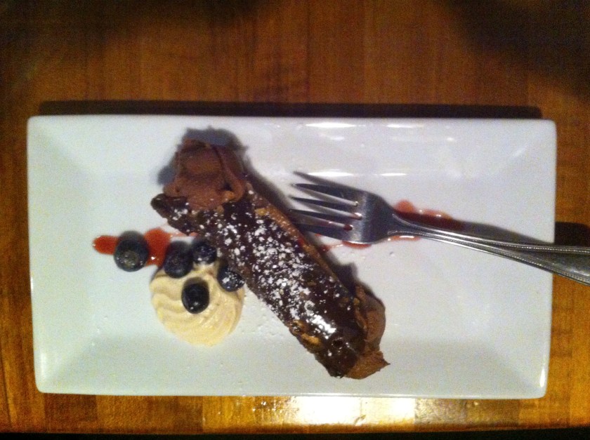 For the main I ordered the seared ducked breast with purple roasted potatoes, exotic mushrooms, red onion and a sun-dried cherry port demi. This dish was solid, but I would have liked for a little more of a sour taste from the sun-dried cherry port demi and for the duck to have been a little rarer, it was a little dry for my liking. On the other hand, my friend ordered the seared tuna dish that came with a potato-zucchini pancake, baby arugula, romesco and lemon butter, this was the best seared tuna dishes I had in a long time. The tuna was perfectly cooked and the potatoe-zucchini pancake was a great compliment to the freshness of the tuna. This is a must get if you decide to visit Entree.